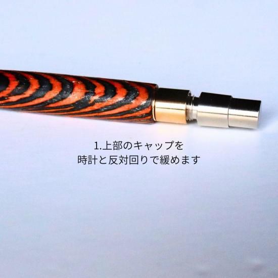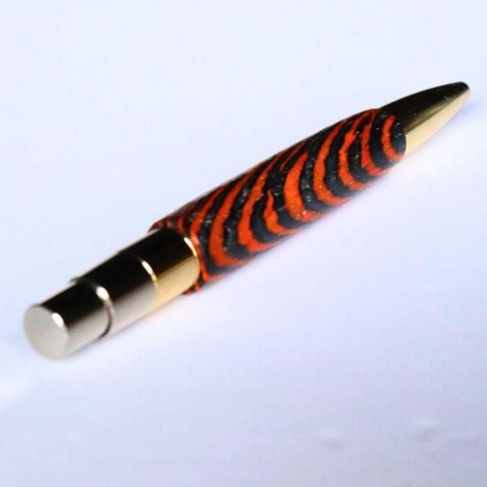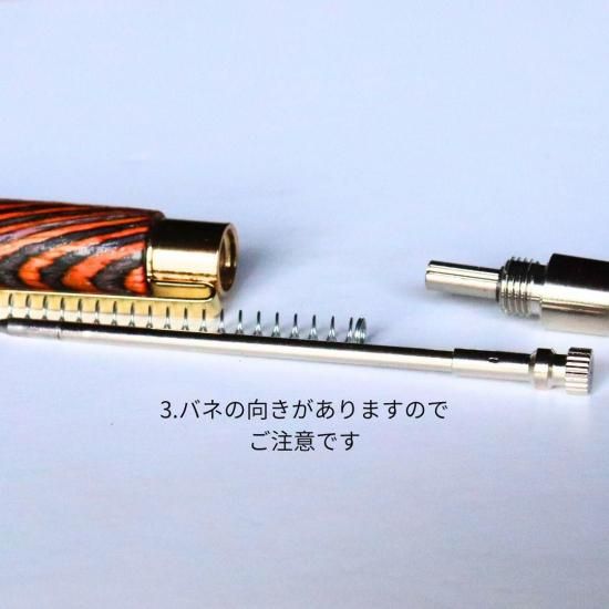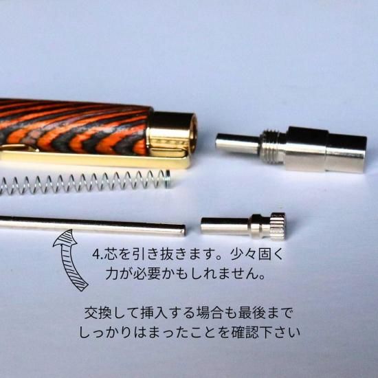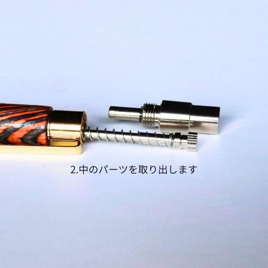 ミニペン(クリック式)!全長わずか10cm程のコンパクトサイズで、手のひらにすっぽり収まる使いやすさが魅力です。クリック式なので、上部をクリックしながら芯を簡単に押し出せます。ペンパーツはアメリカ製で、交換芯は4cタイプをご使用いただけます。
